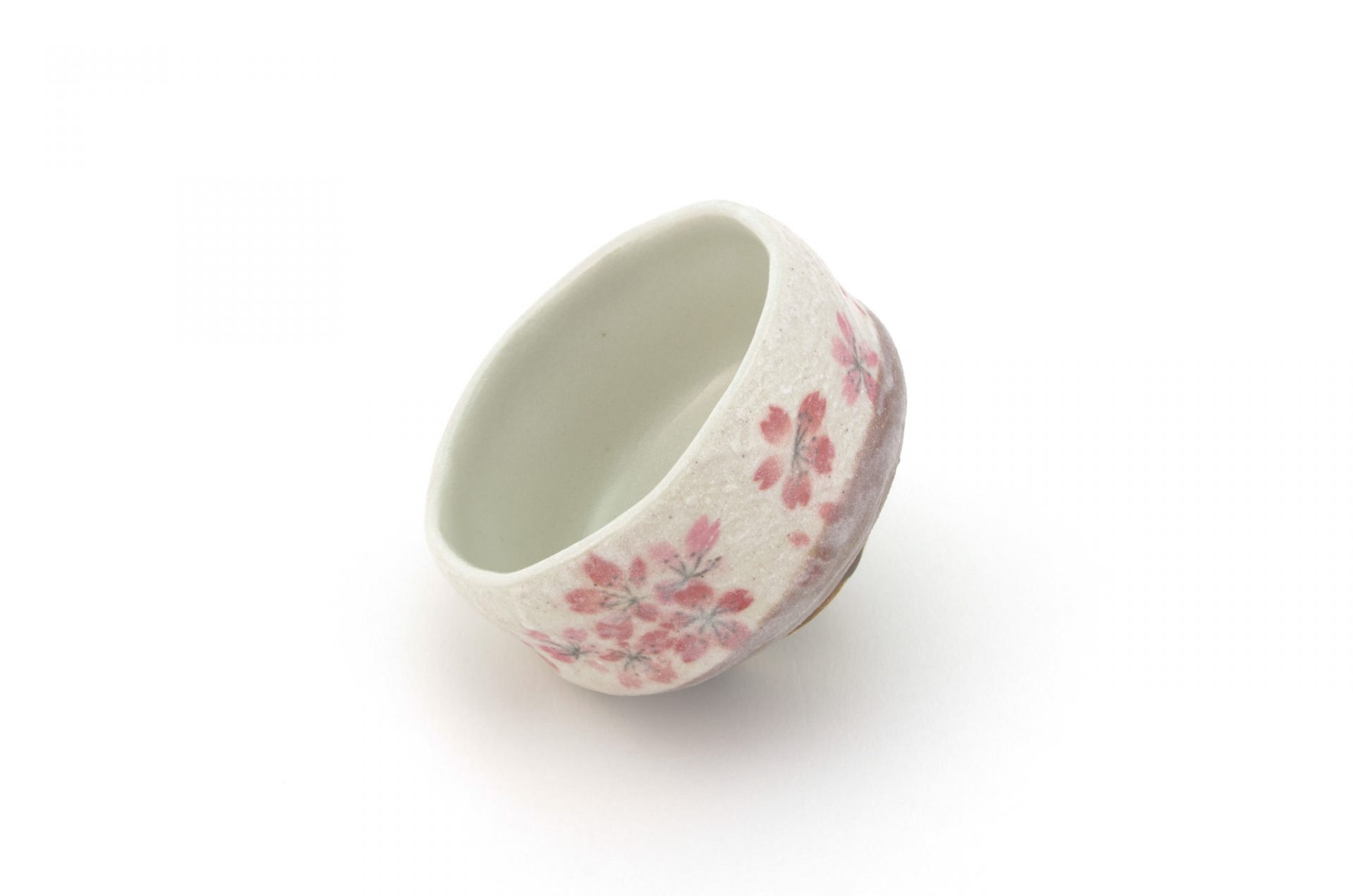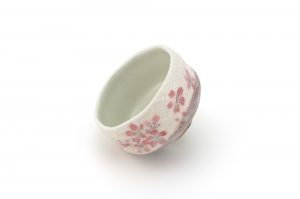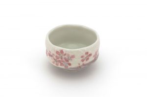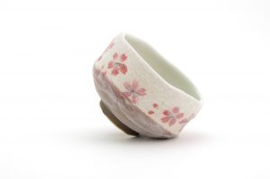 This matcha bowl is a fine example of Minoyaki wares from Gifu Prefecture in central Japan. It can be used as a cup for other Japanese teas, or as a small matcha bowl. The bowl is the perfect size for those who like to drink smaller portions of matcha and features a brown base with white top layer and a Sakura Cherry Blossom Flower Motif – each bowl is hand-made and unique.