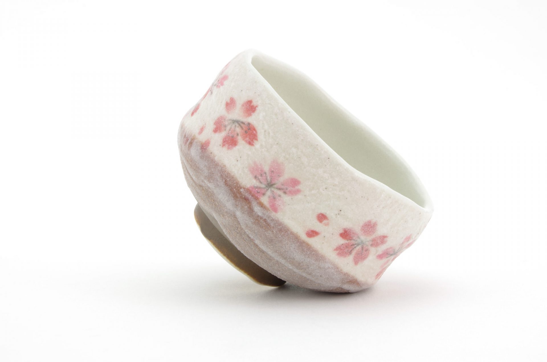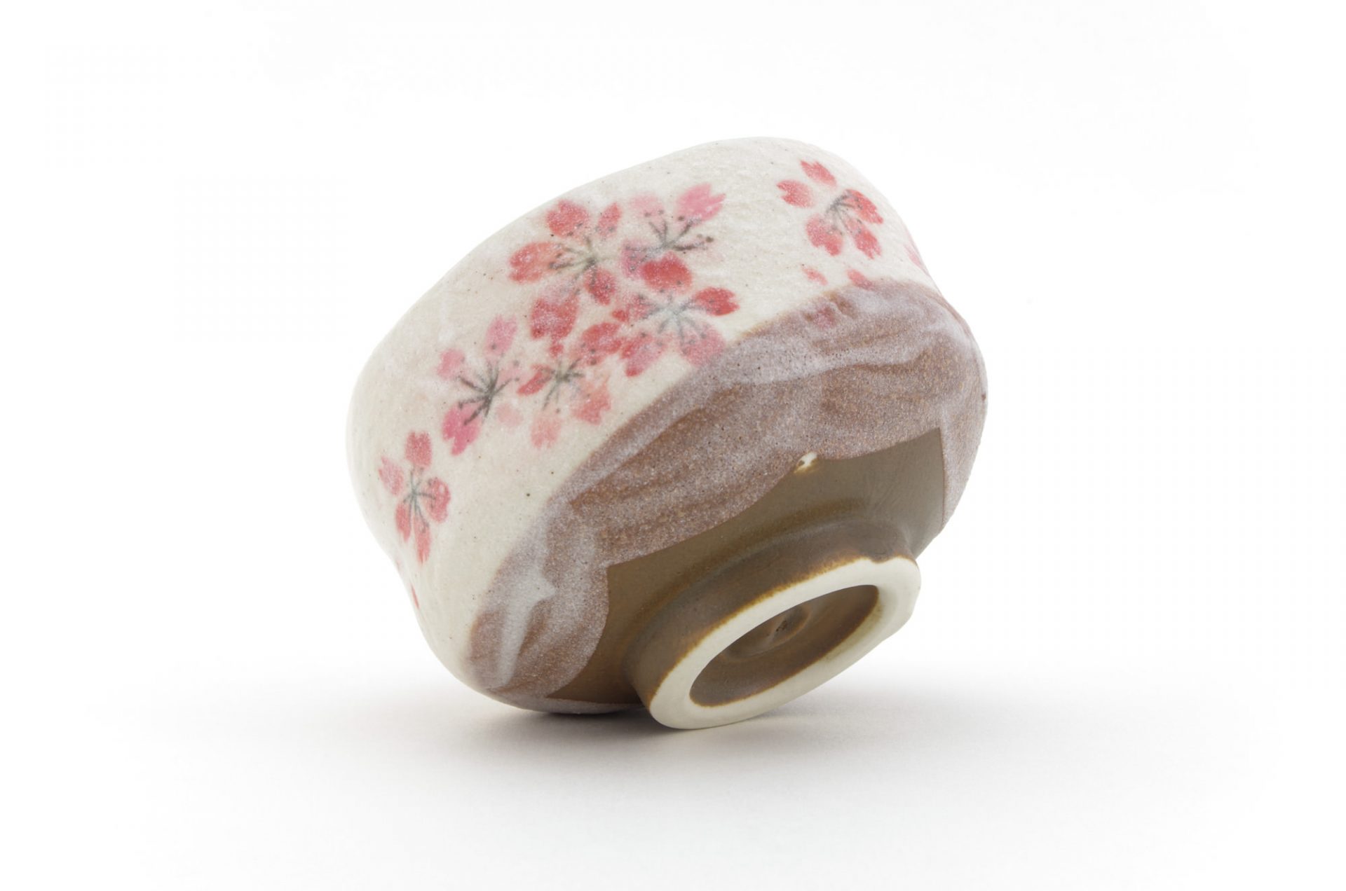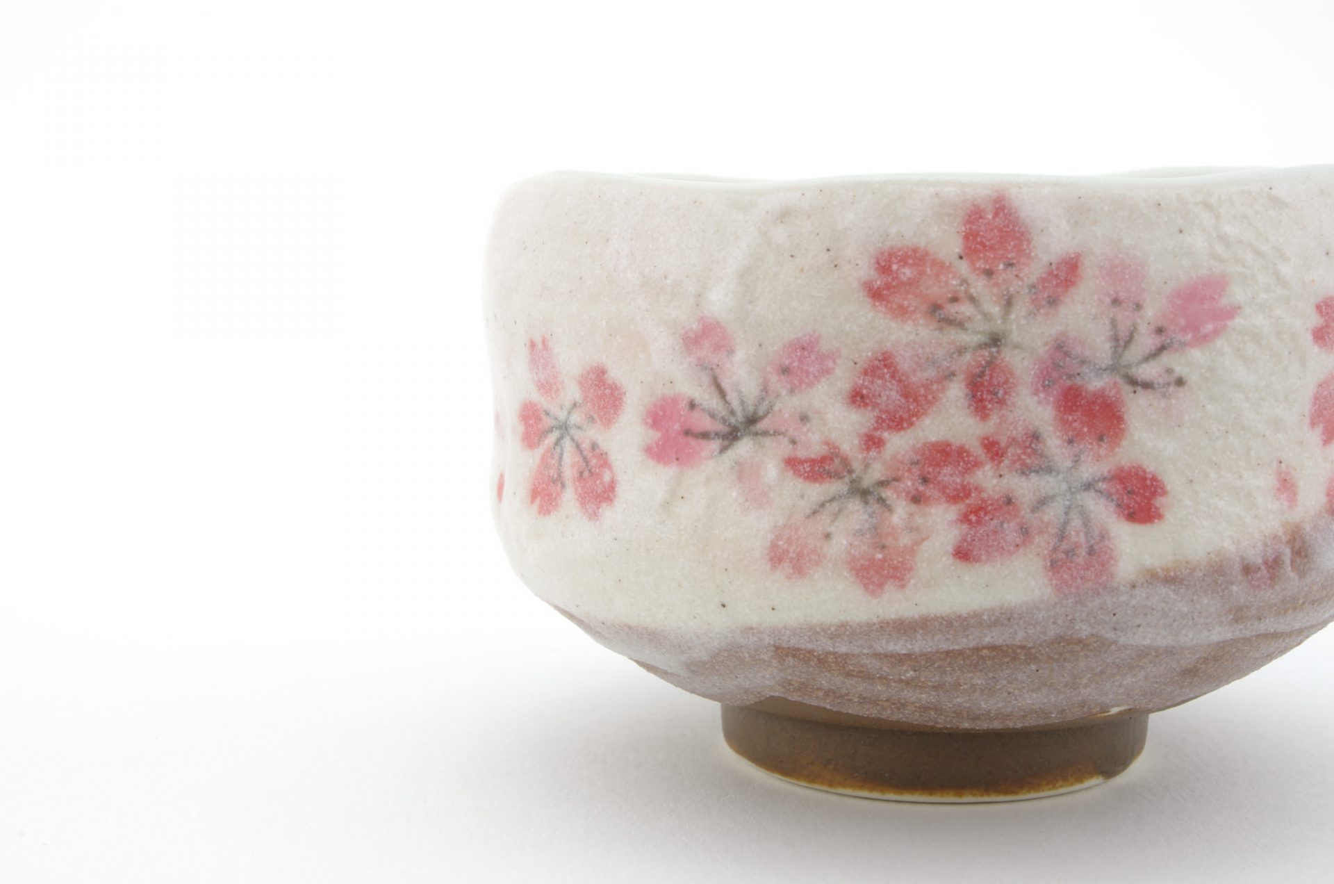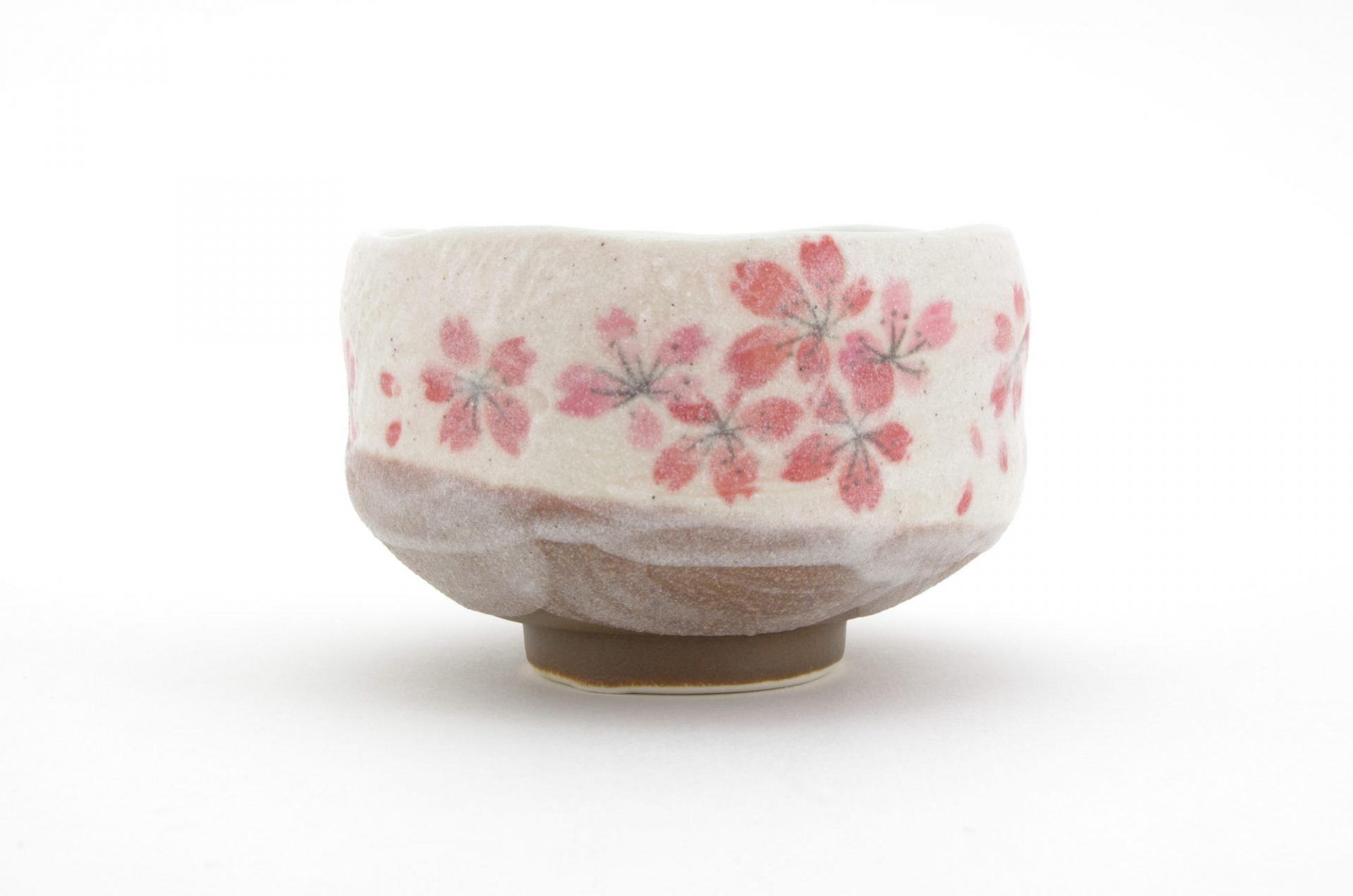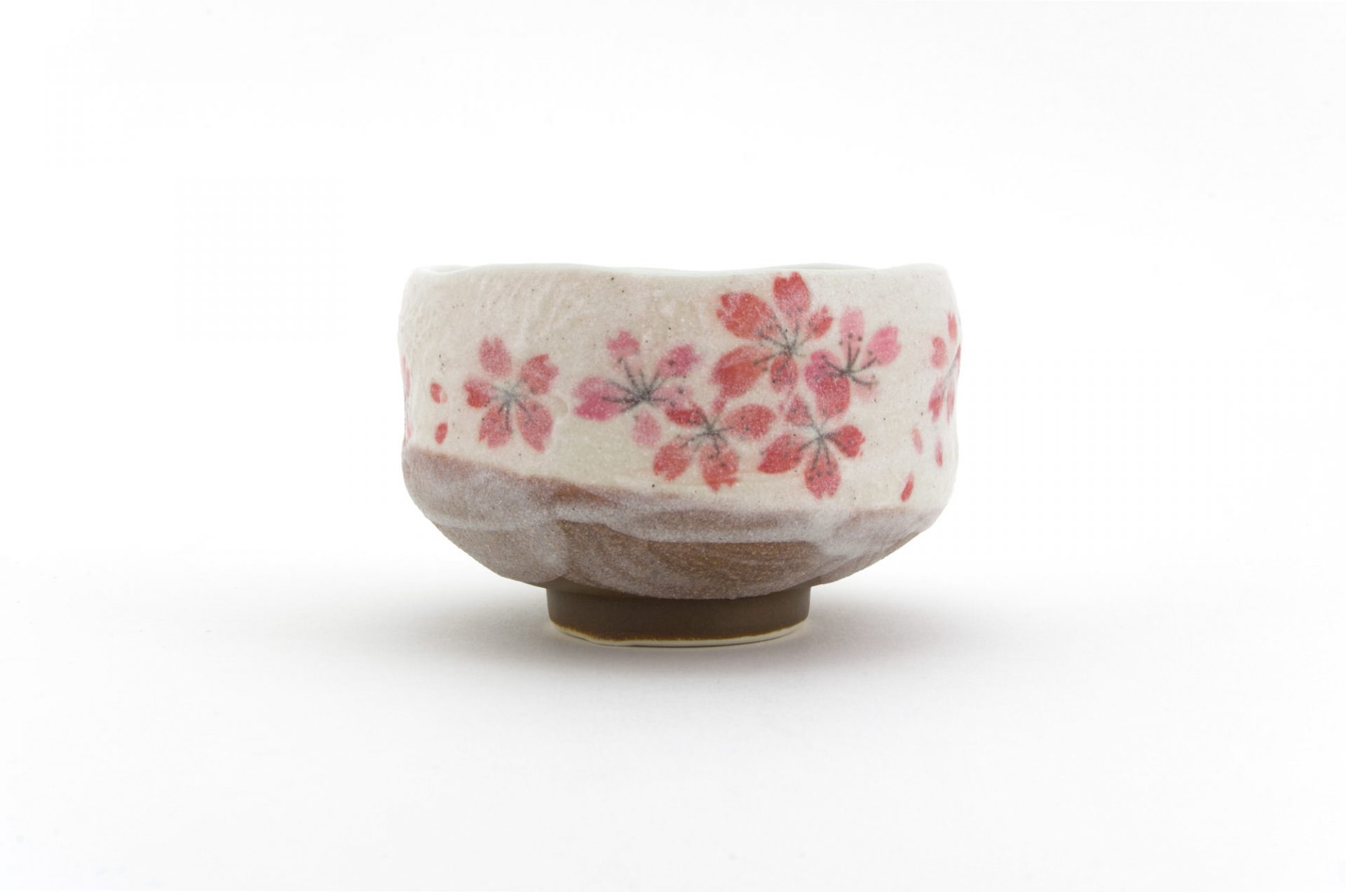 This matcha bowl is a fine example of Minoyaki wares from Gifu Prefecture in central Japan. It can be used as a cup for other Japanese teas, or as a small matcha bowl. The bowl is the perfect size for those who like to drink smaller portions of matcha and features a brown base with white top layer and a Sakura Cherry Blossom Flower Motif – each bowl is hand-made and unique.
