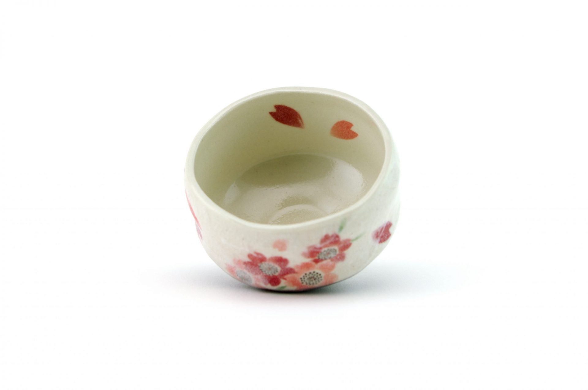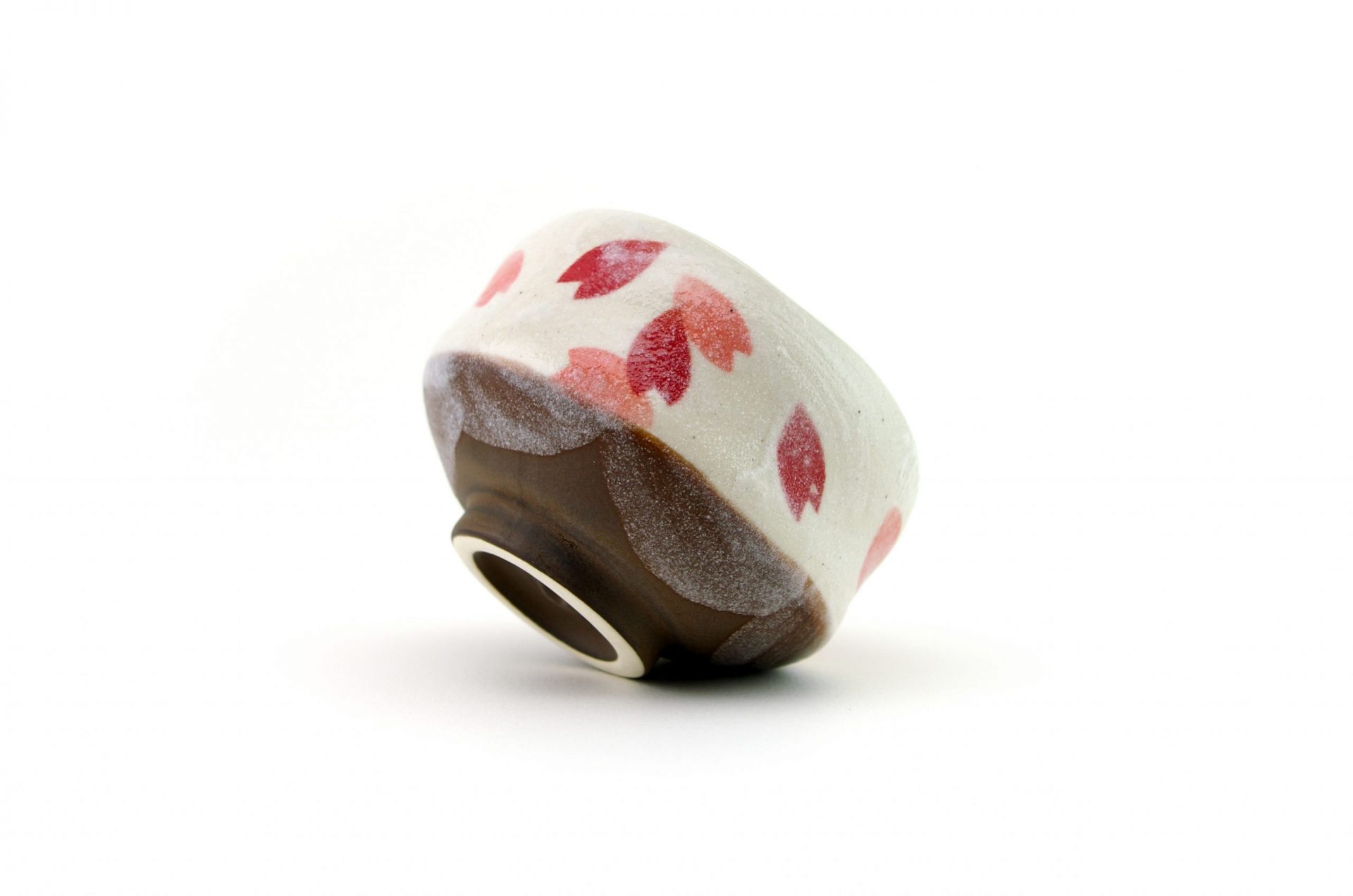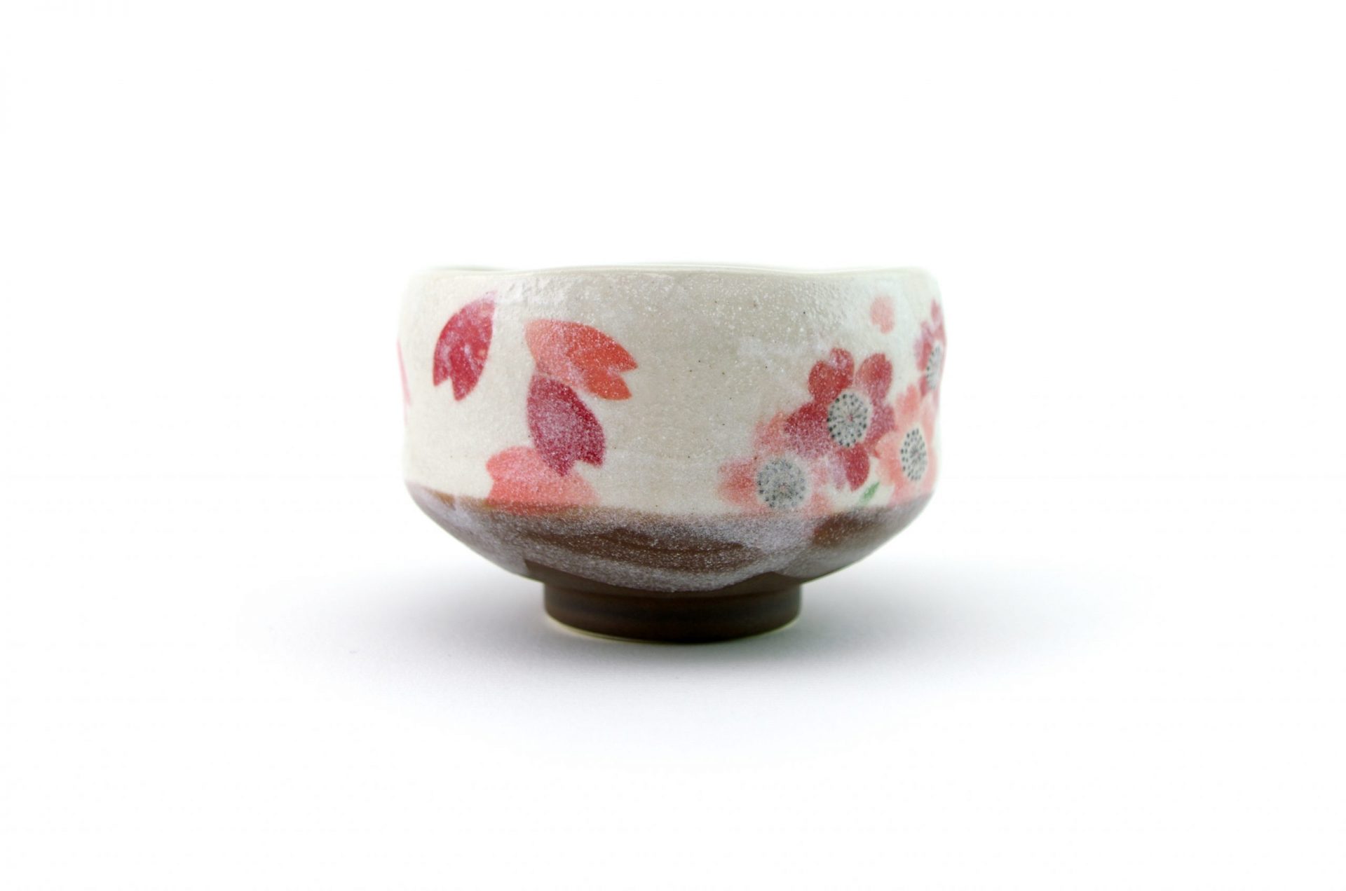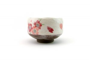 This matcha bowl is a fine example of Minoyaki wares from Gifu Prefecture in central Japan. It can be used as a cup for other Japanese teas, or as a small matcha bowl. The bowl is the perfect size for those who like to drink smaller portions of matcha and features a brown base with white top layer and a cherry blossom motif – each bowl is hand-made and unique.