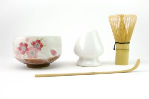 This set of Matcha Whisk (Chasen), Matcha Scoop (Chashaku), Whisk Stand (Naoshi) and Ceramic Matcha Bowl (Chawan) are essential for making Matcha green tea in the traditional Japanese way.