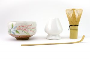 This set of Matcha Whisk (Chasen), Matcha Scoop (Chashaku), Whisk Stand (Naoshi) and Ceramic Matcha Bowl (Chawan) are essential for making Matcha green tea in the traditional Japanese way.