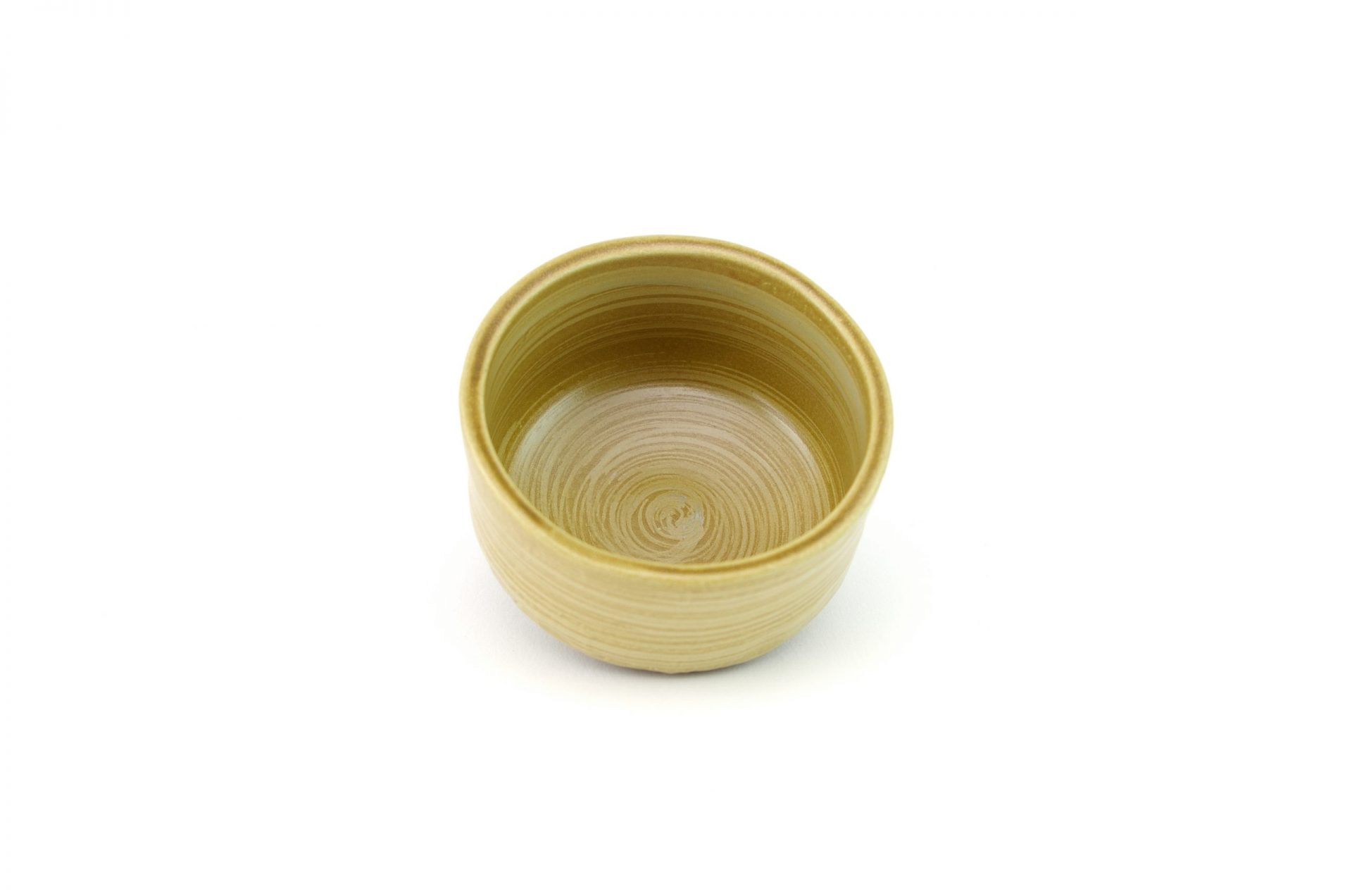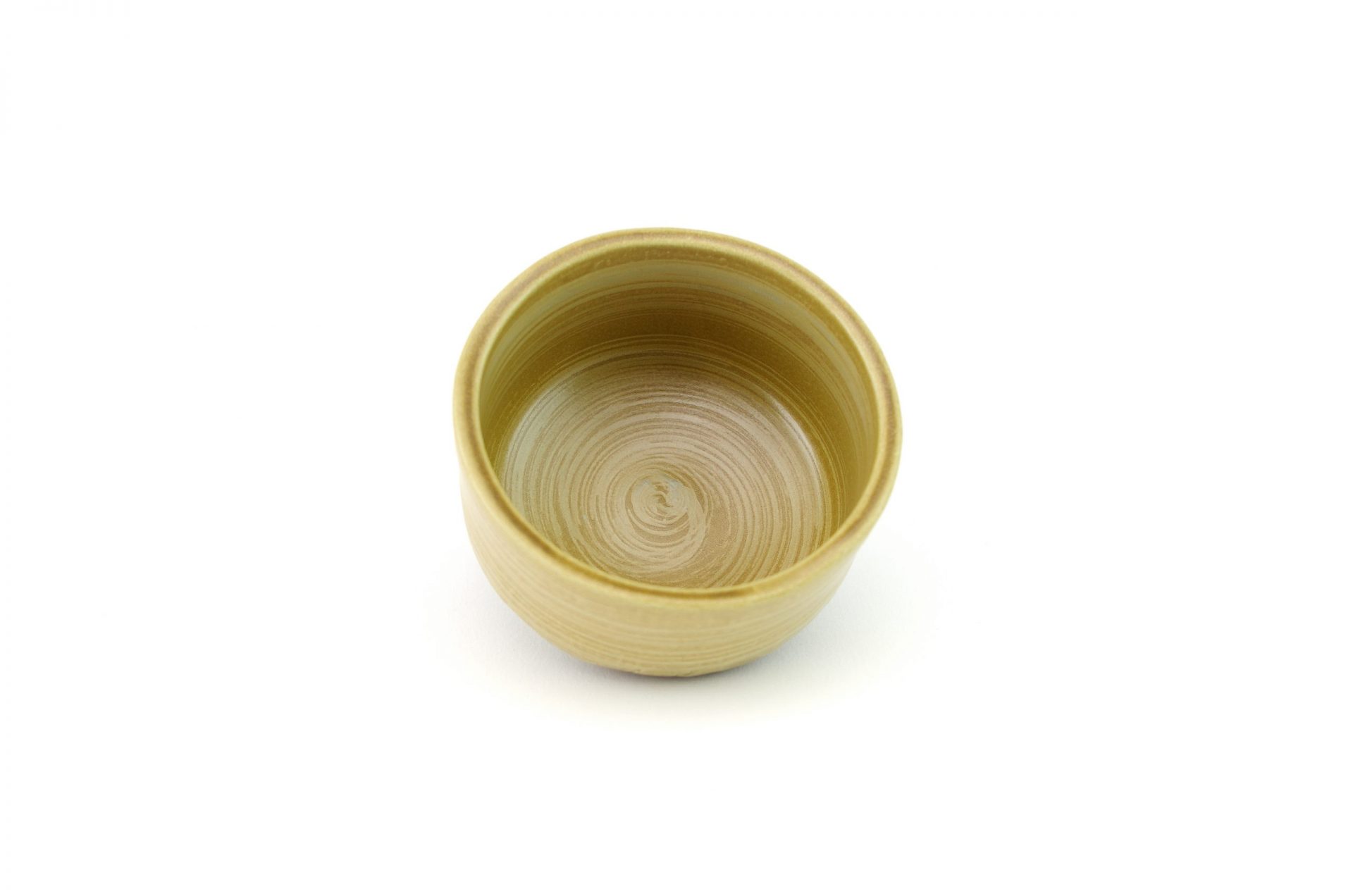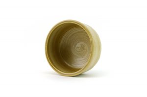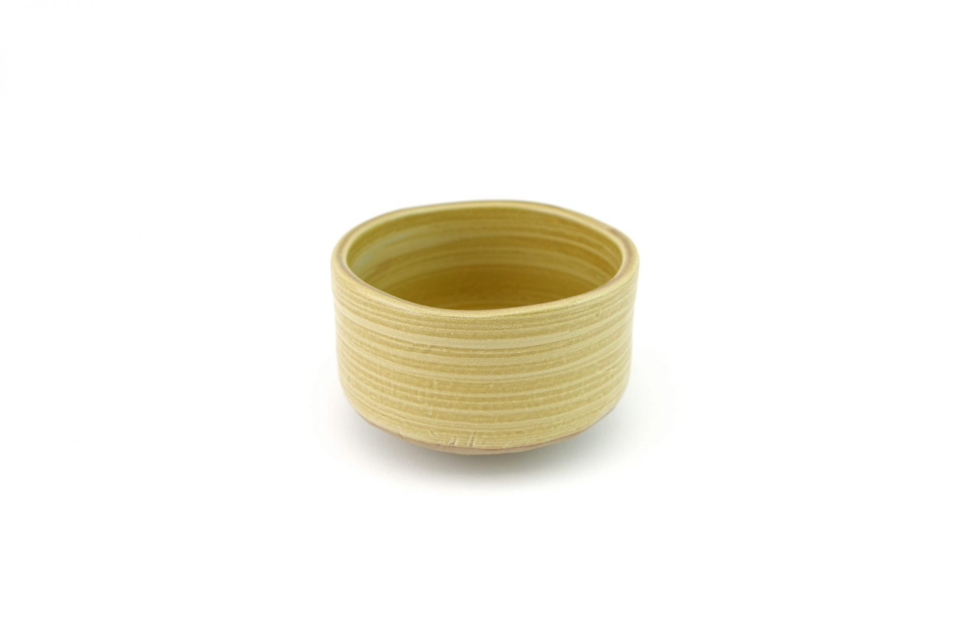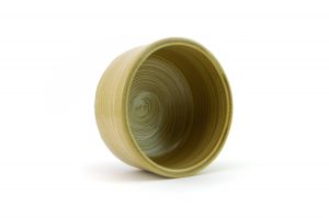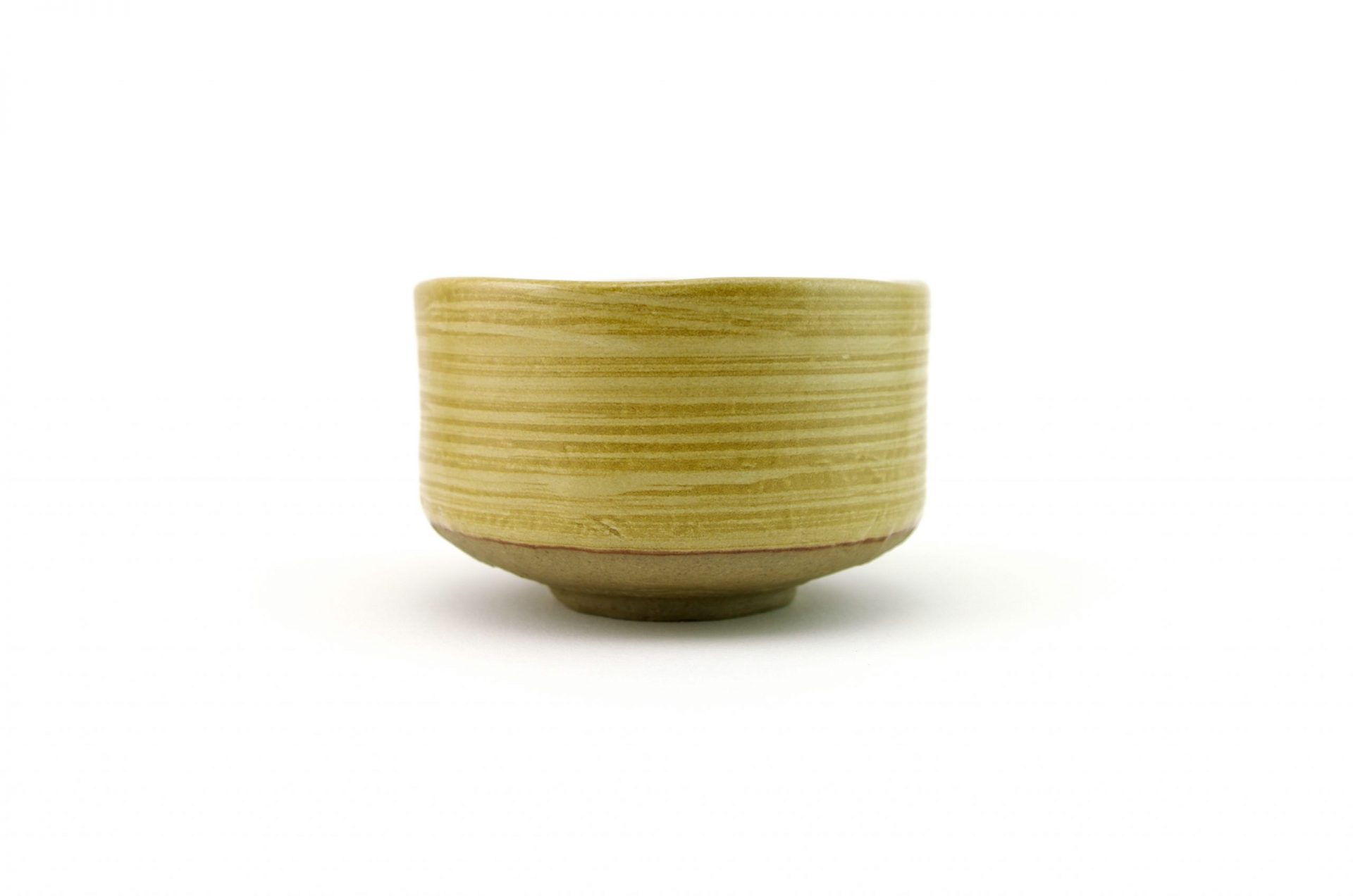 This Matcha bowl is a fine example of Minoyaki wares from the Gifu Prefecture in central Japan with this bowl featuring a yellow glaze and unique swirl-like motif. Both the whisk and scoop are crafted from natural white bamboo and feature a similar light brown shade. The ceramic white Whisk Stand provides the perfect place to store your 100 prong whisk as well as allowing it to keep a good shape.